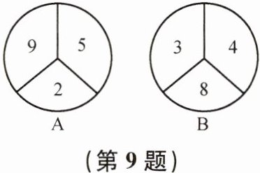 9. 如图,转盘A、B除所标数字外都相同. 游戏规定:转动两个转盘各一次,当转盘停止转动时,指针所落扇形中的数字大的一方获胜. 现由你和小明各选择一个转盘,你会选择其中的哪一个?为什么?