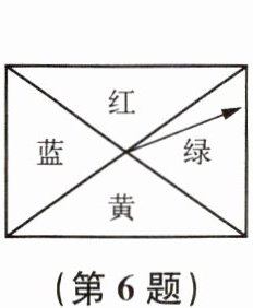 6. 如图,一块矩形木板,连接对角线后被分成4个区域,分别涂上红、黄、蓝、绿四色,木板中间装有指针,指针转动停止后. 有如下两个结论: