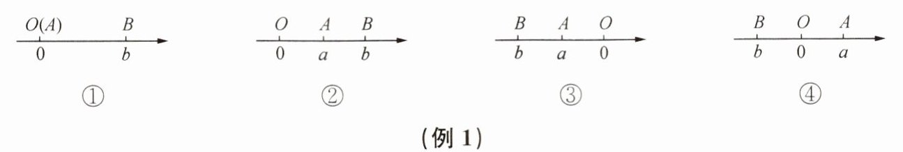 例1 (1)阅读下面材料:点A、B在数轴上分别表示实数a、b,A、B两点之间的距离表示为|AB|.