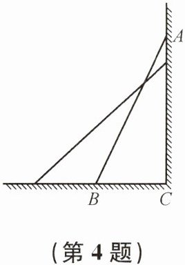 4. 如图,一架长2.5 m的梯子AB斜靠在竖直的墙AC上,这时点B到墙脚C的距离为0.7 m. 如果梯子的顶端沿墙下滑0.4 m,那么点B将向外移动多少米?