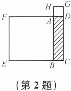 2. 如图,矩形ABCD的周长为20 cm,以AB、AD为边分别向外作正方形ABEF和正方形ADGH. 若正方形ABEF和正方形ADGH的面积之和为$68\ cm^2$,则矩形ABCD的面积为(