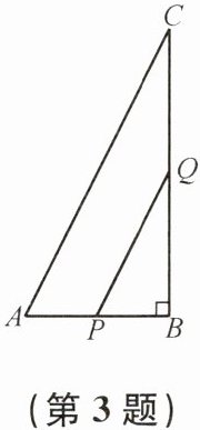 3. 如图,在$\triangle ABC$中,$\angle B= 90^\circ$,$AB= 6\ cm$,$BC= 12\ cm$. 点P从点A开始,沿边AB向点B以1 cm/s的速度移动,点Q从点B开始,沿边BC向点C以2 cm/s的速度移动. 如果点P、Q同时出发,那么几秒后$\triangle PBQ的面积等于8\ cm^2$?