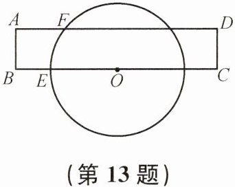 13. 如图,矩形$ABCD的一边BC过圆心O$,且$AB= 4\ cm$,$BE= 3\ cm$,$AF= 5\ cm$. 求$\odot O$的半径的长.