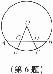 6. 如图,AB是⊙O的弦,点C、D在AB上,AC= BD,半径OE、OF分别过点C、D,CE、DF一定相等吗?请说明理由.
