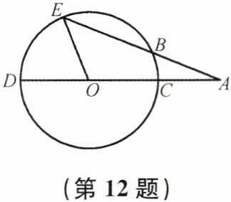 12. 如图,CD是⊙O的直径,∠EOD= 78°,AE交⊙O于点B,且AB= OE. 求∠E的度数.