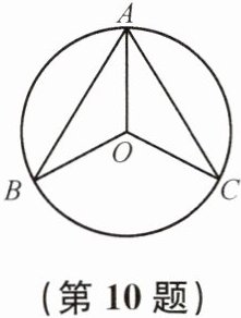 10. 如图,已知AB、AC是⊙O的两条弦,且AB= AC,∠BOC= 110°. 求∠BAO的度数.