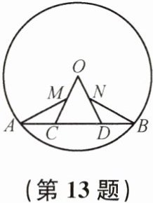 13. 如图,C、D是⊙O的弦AB上的三等分点,M、N分别是OC、OD的中点. 试说明:AM= BN.