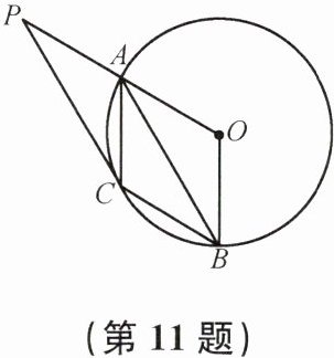 11.如图,A、B是⊙O上的两点,∠AOB= 120°,C是A)B的中点.