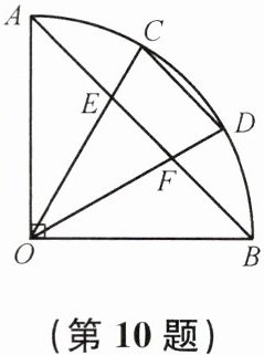 10.如图,扇形OAB的圆心角为90°,C、D是A)B的三等分点,AB与OC、OD分别相交于