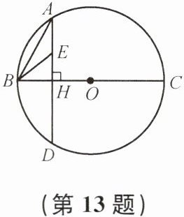 13. 如图,BC是⊙O的直径,AD是⊙O的弦,BC⊥AD,垂足为H,AD= 8,OH= 3.