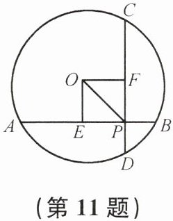11. 如图,在⊙O中,弦AB、CD相交于点P,且四边形OEPF是正方形,⊙O的半径为5 cm,OP= 3$\sqrt{2}$cm.求AB的长.