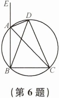 6. 如图,$AD为圆内接三角形ABC的外角\angle EAC$的平分线,它与圆交于点$D$.$BD与CD$相等吗?为什么?