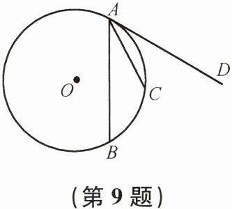 9. 如图,AB、AC 是⊙O 的弦,AD 是⊙O 的切线,且 AC 平分∠BAD. $\widehat{AC}与\widehat{BC}$相等吗?为什么?