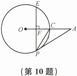 10. 如图,A 是⊙O 外一点,OA 交⊙O 于点 C,过⊙O 上一点 P 作 PF⊥OA,垂足为 F,直线 PF 交⊙O 于点 E,∠FPC= ∠CPA. PA 是⊙O 的切线吗?为什么?