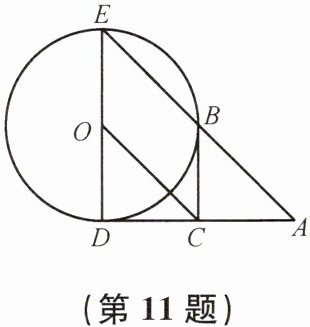 11. 如图,DE 是⊙O 的直径,过点 D 作⊙O 的切线 AD,C 是 AD 的中点,AE 交⊙O 于点 B,且 BC//ED.