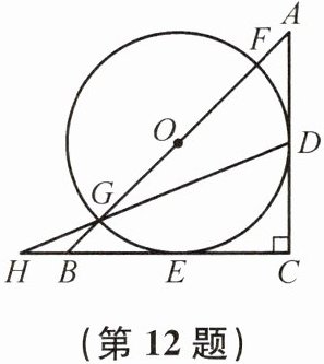 12. 如图,在△ABC 中,∠C= 90°,AC= BC= 4,点 O 在 AB 上,⊙O 分别与 AC、BC 相切于点 D、E,与 AB 相交于点 F、G,DG、CB 的延长线相交于点 H. 求 CH 的长.