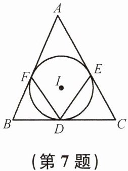 7. 如图,△ABC的内切圆I与边BC、CA、AB分别相切于点D、E、F,则$\angle FDE与\angle A的关系是(