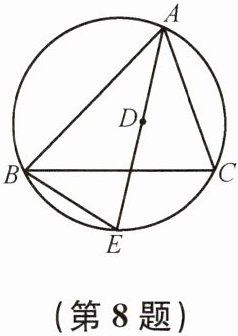 8. 如图,AE平分$\angle BAC,$交△ABC的外接圆于点E,D是AE上一点,且ED= EB. 点D是否为△ABC的内心?为什么?