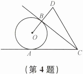 4. 如图,CA、CB分别切⊙O于点A、B,延长OB到点D,使BD= OB,∠DCA= 60°.求∠D的度数.