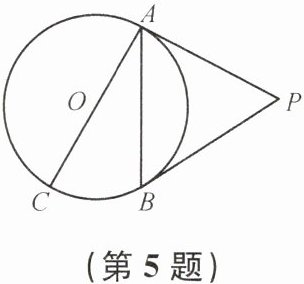 5. 如图,PA、PB分别切⊙O于点A、B,AC是⊙O的直径,∠BAC= 20°.求∠P的度数.