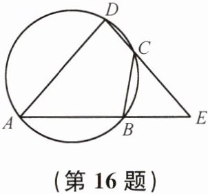 16. 如图,点A、B、C、D在圆上,DC、AB的延长线相交于点E,且BC= BE. 求证:△ADE是等腰三角形.