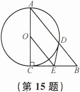 15. 如图,在Rt△ABC中,∠C= 90°,以AC为直径的⊙O交AB于点D,OE//AB交BC于点E. 判断DE与⊙O的位置关系,并说明理由.