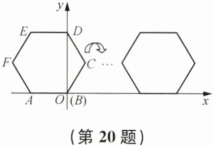 20. 正六边形ABCDEF在平面直角坐标系中的位置如图所示,点A的坐标为(-2,0),点B在原点,把正六边形ABCDEF沿x轴正半轴做无滑动的连续翻转,每次翻转60°,经过2025次翻转之后,求点B的坐标.