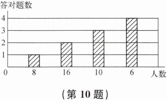 解:由图可知,答对题数及对应人数为:1题8人,2题16人,3题10人,4题6人。