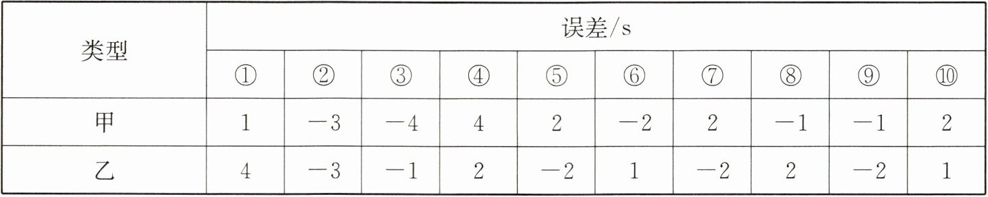 (1)计算甲、乙两种电子手表走时误差的平均数.