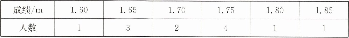 |成绩/m|1.60|1.65|1.70|1.75|1.80|1.85|