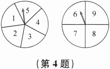 4. 如图,两个转盘分别被分成5等份和4等份,同时转动两个转盘,当转盘停止时,指针都指向奇数的概率是(