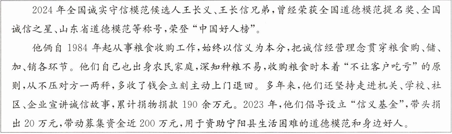 (2)向王氏兄弟这样的诚信人物学习有什么重要意义?