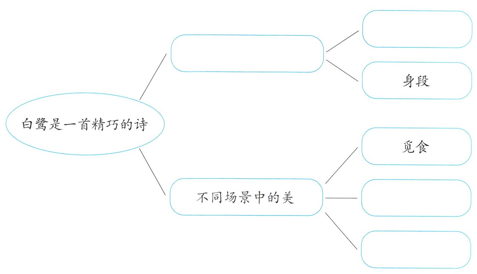 四、回顾课文内容,你从哪些方面感受到“白鹭是一首精巧的诗”?请把图表补充完整。