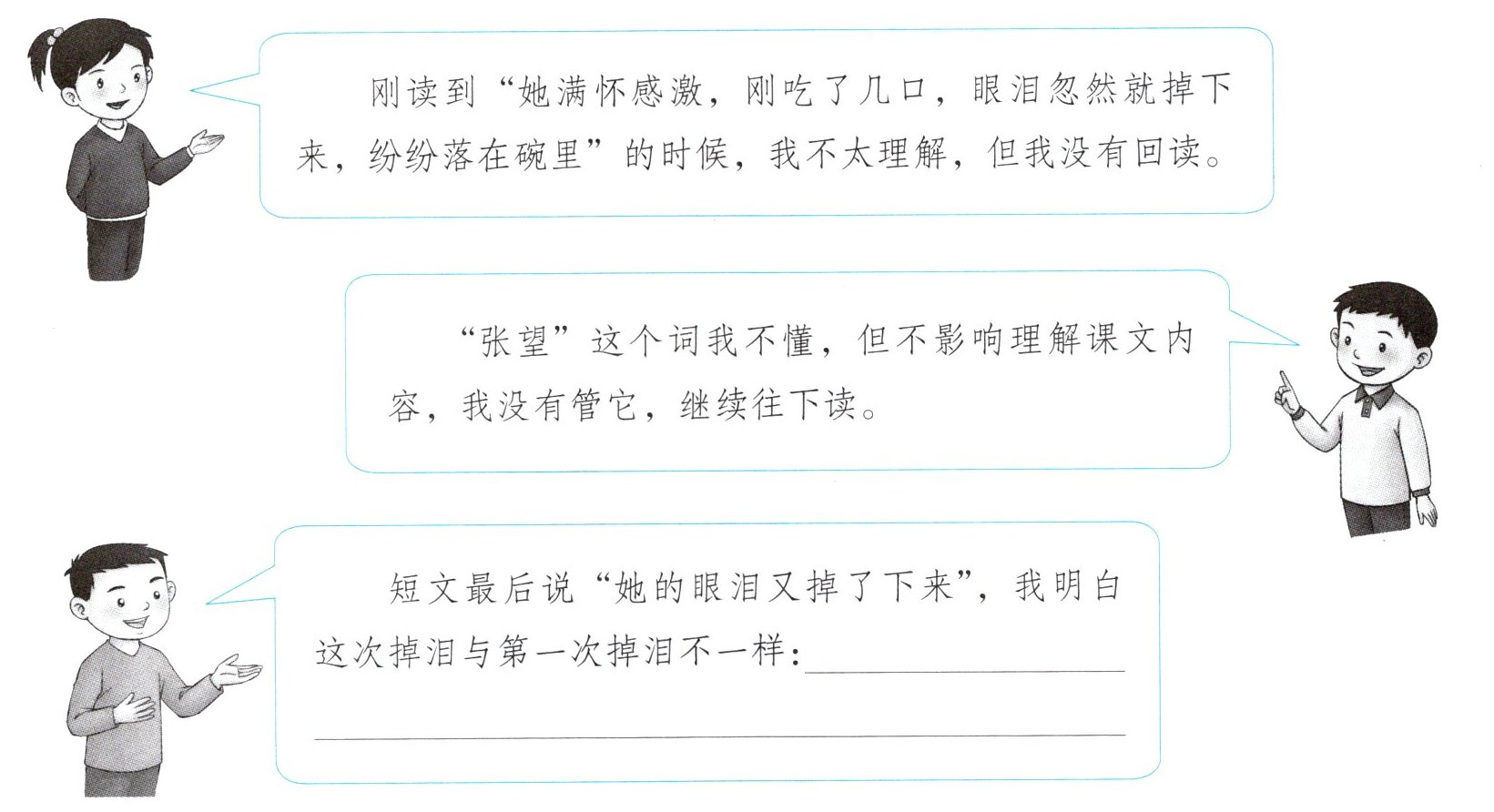 “张望”这个词我不懂,但不影响理解课文内容,我没有管它,继续往下读。