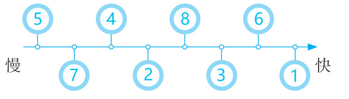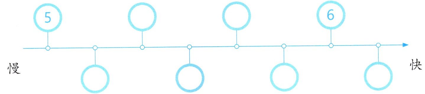 五、根据课文内容,按运动速度的快慢给下面的事物排序,照样子填序号。