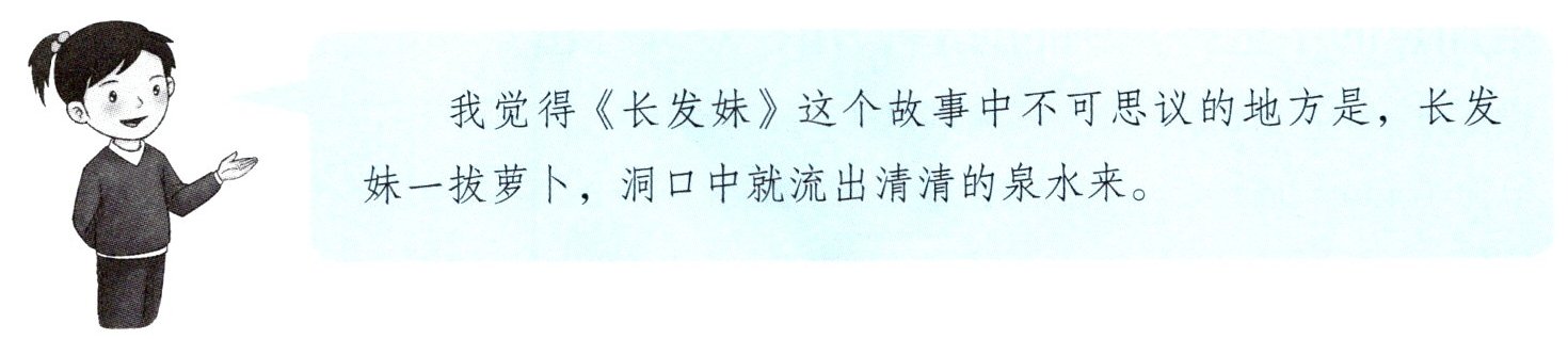 我觉得《长发妹》这个故事中不可思议的地方是,长发妹一拔萝卜,洞口中就流出清清的泉水来。