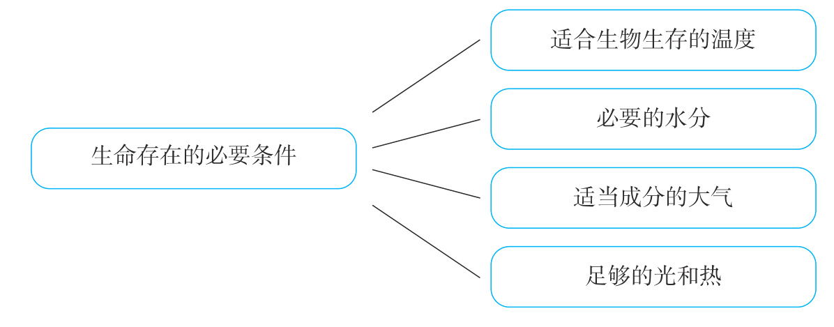 3. 读第②自然段,梳理生命存在的条件,填写下图。