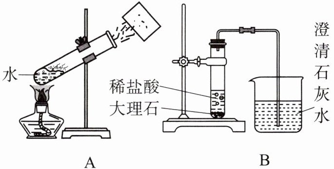 (2)A中溶解在水中的气体受热逸出,水沸腾产生气泡,是物理变化,B中产生了新物质,是化学变化
