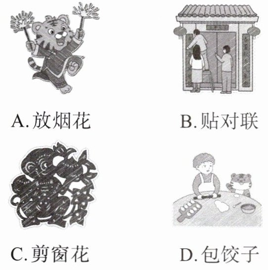 1.A 解析:烟花燃烧与化学性质有关,贴对联、剪窗花、包饺子都与化学性质无关。