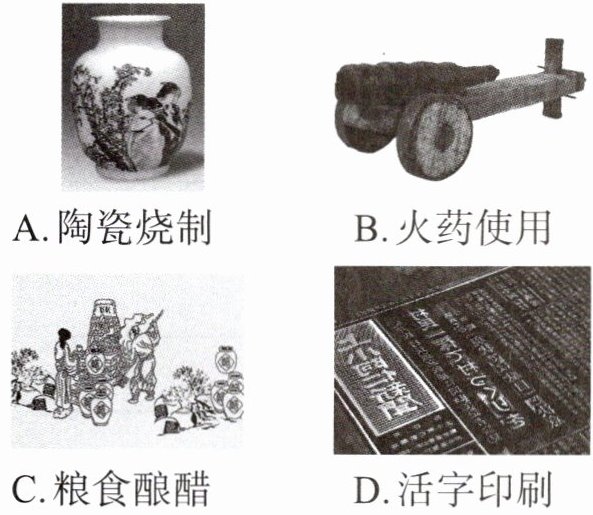 3.D 解析:活字印刷不涉及化学变化。烧制陶瓷、火药使用、粮食酿醋过程中都有新物质产生,是化学变化。
