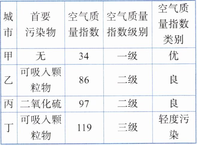 16. 下表为某日我国部分城市的空气质量指数日报。