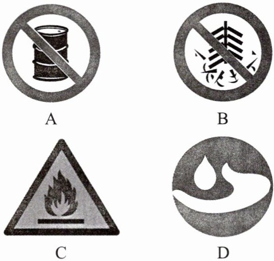 (2)①通过观察得出,A图是禁止放易燃物标志,B图是禁止燃放鞭炮标志,C图是当心易燃物标志,D图是节约用水标志。 节约用水标志的含义是水就像"掌上明珠"一样珍贵,请节约每一滴水。②能对水产生极大污染的有工业三废的任意排放,农业上流失的农药和化肥,还有生活污水的任意排放。③在我们的日常生活中要从点滴小事做起来节约用水,如随手关水龙头、不使用含磷洗衣粉、不向河里乱丢垃圾等。