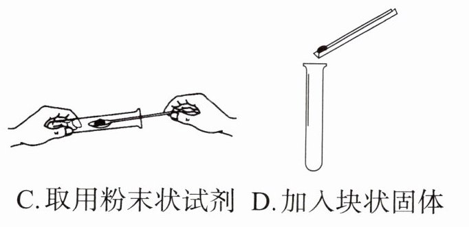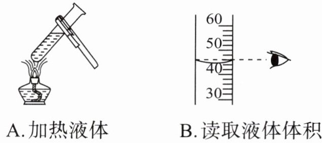 8.C 解析:加热液体时试管中液体体积不能超过试管容积的$\frac{1}{3}$;读取液体体积时,视线要与量筒内凹液面最低处保持水平;向试管中加入块状固体时,需将试管横放,用镊子把固体放在管口,再慢慢将试管竖立起来。