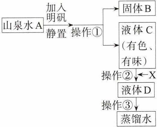 18. 小明周末从山里带回一瓶浑浊的山泉水,他在化学实验室里模仿自来水厂净化过程,最终制成蒸馏水,流程如图所示: