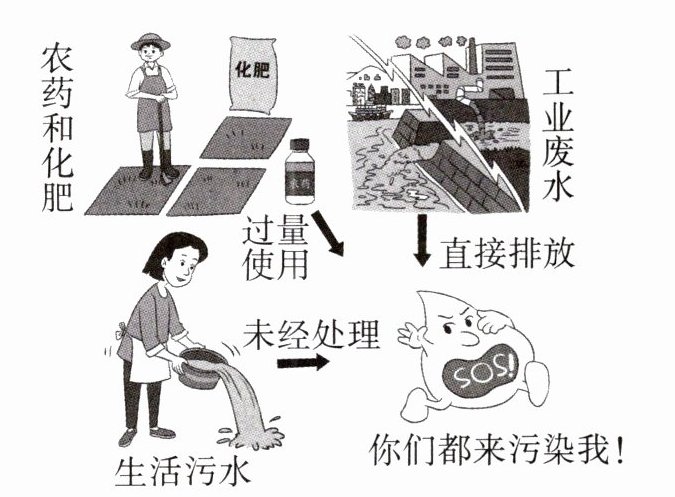 (3)生活污水应集中处理和排放(合理即可)解析:图中的漫画形象逼真地反映了水体遭到污染的主要原因: