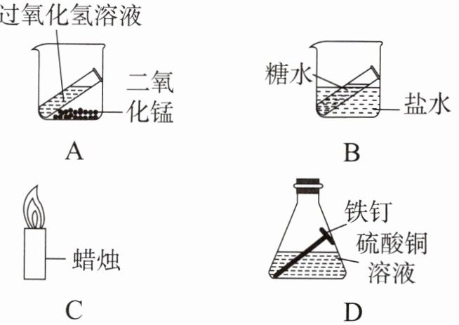 D 解析:铁与硫酸铜反应生成硫酸亚铁和铜,没有气体物质逸出,反应前后容器中物质的总质量不变,能直接用于验证质量守恒定律。