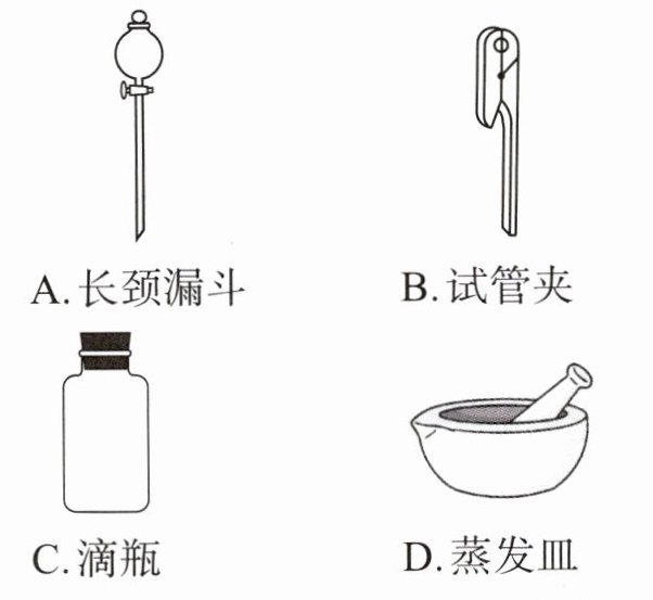 B 解析:A项是分液漏斗,C项是广口瓶,D项是研钵。