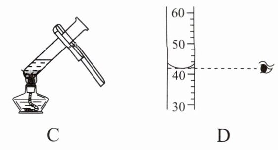 D 解析:不能用燃着的酒精灯点燃另一酒精灯;滴加液体时,滴管应垂直悬空,不能伸入试管中;给液体加热时,液体体积不能超过试管容积的$\frac{1}{3}$,且应使用外焰加热。