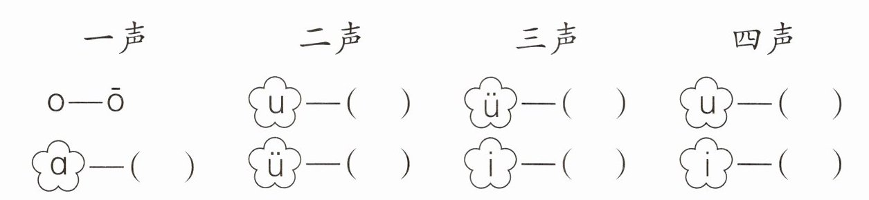 三、照样子,给下面的韵母加上声调