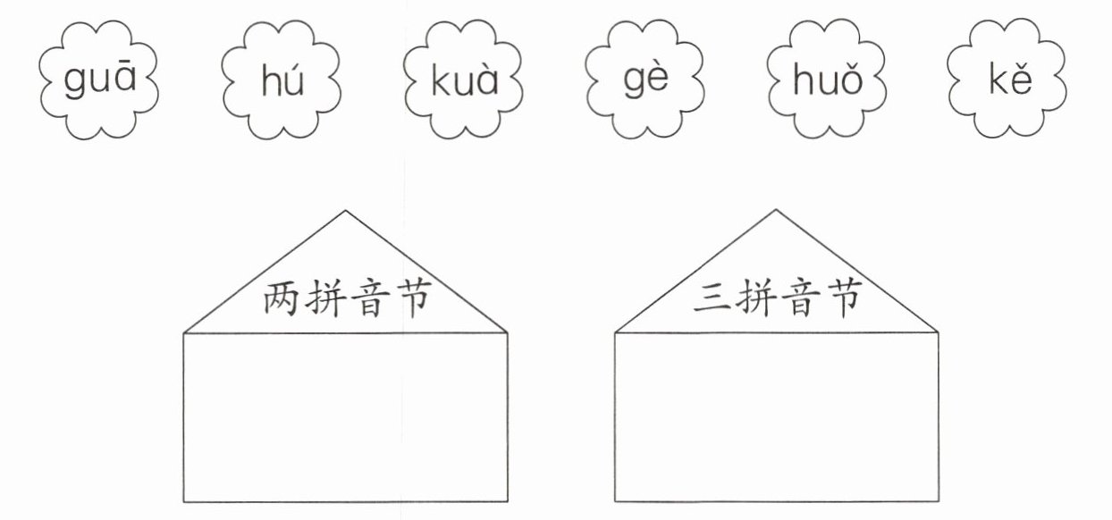 两拼音节 hú gè kě 三拼音节 guā kuà huǒ
